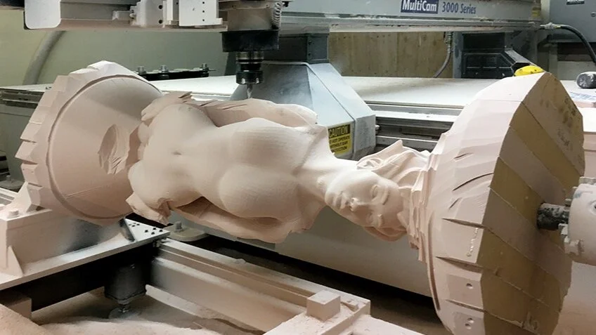 We carved our second figurehead for the North Star suite’s bedroom on a rotary CNC router this week. This video shows her being carved from an enormous block of HDU. I am really looking forward to hand sculpting the final details on these two figureheads!