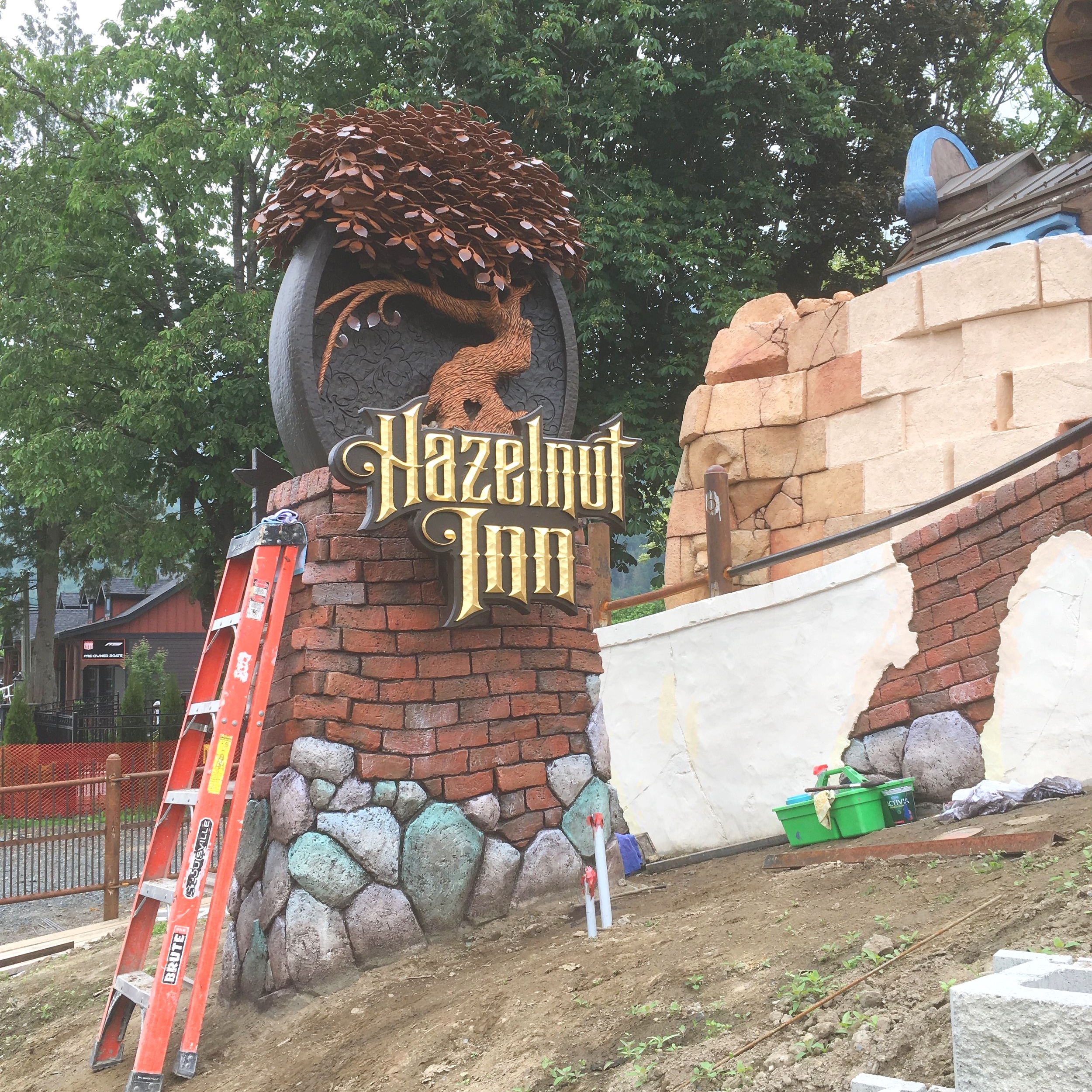 The Hazelnut Inn’s front sign is now finished. Next our painters will finish up the front wall before moving on to the North Star suite’s garden wall. Exciting times!