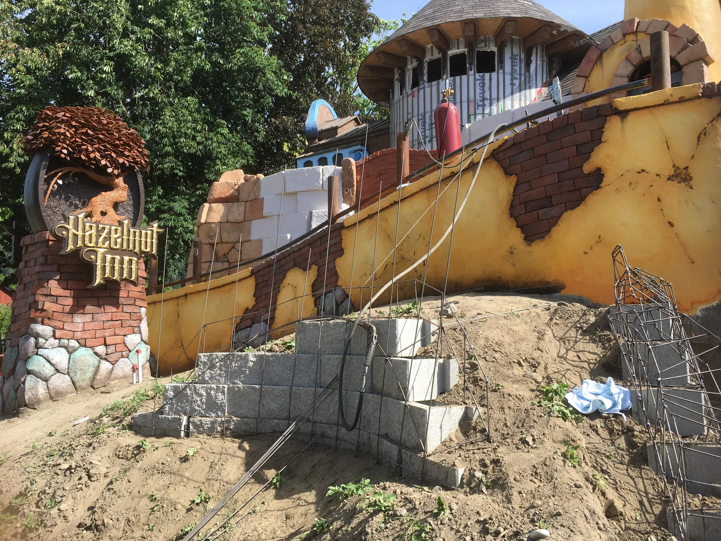 The Hazelnut Inn’s front garden includes a little rockwork. At the moment the rocks are all but invisible - we are welding the steel structure that will support the sculpted concrete “rocks.” We should be ready to sculpt the rocks some time next week.