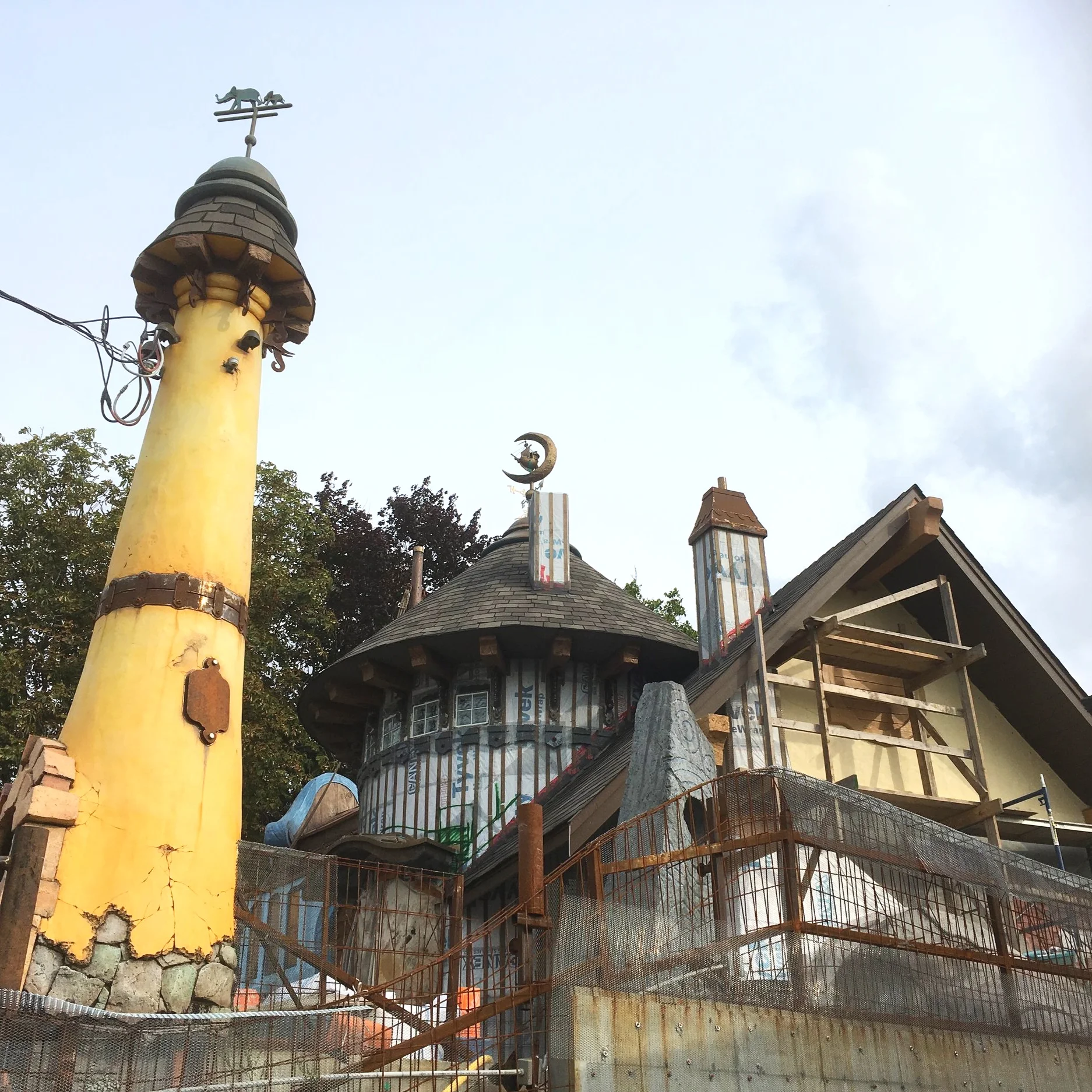 The Hazelnut Inn has a lot of vertical elements. Numerous towers, chimneys, standing stones, and (of course) a ships mast vie for passerby’s attention. And it does grab their attention - it is very gratifying to see cars screech to the side of the road with their occupant’s fingers pointing or couples out for a walk taking selfies in front of the sign. But my favourites are the children’s spontaneous cries of “That’s so cooooool”! We are a long way from finished but I think we are on the right track.