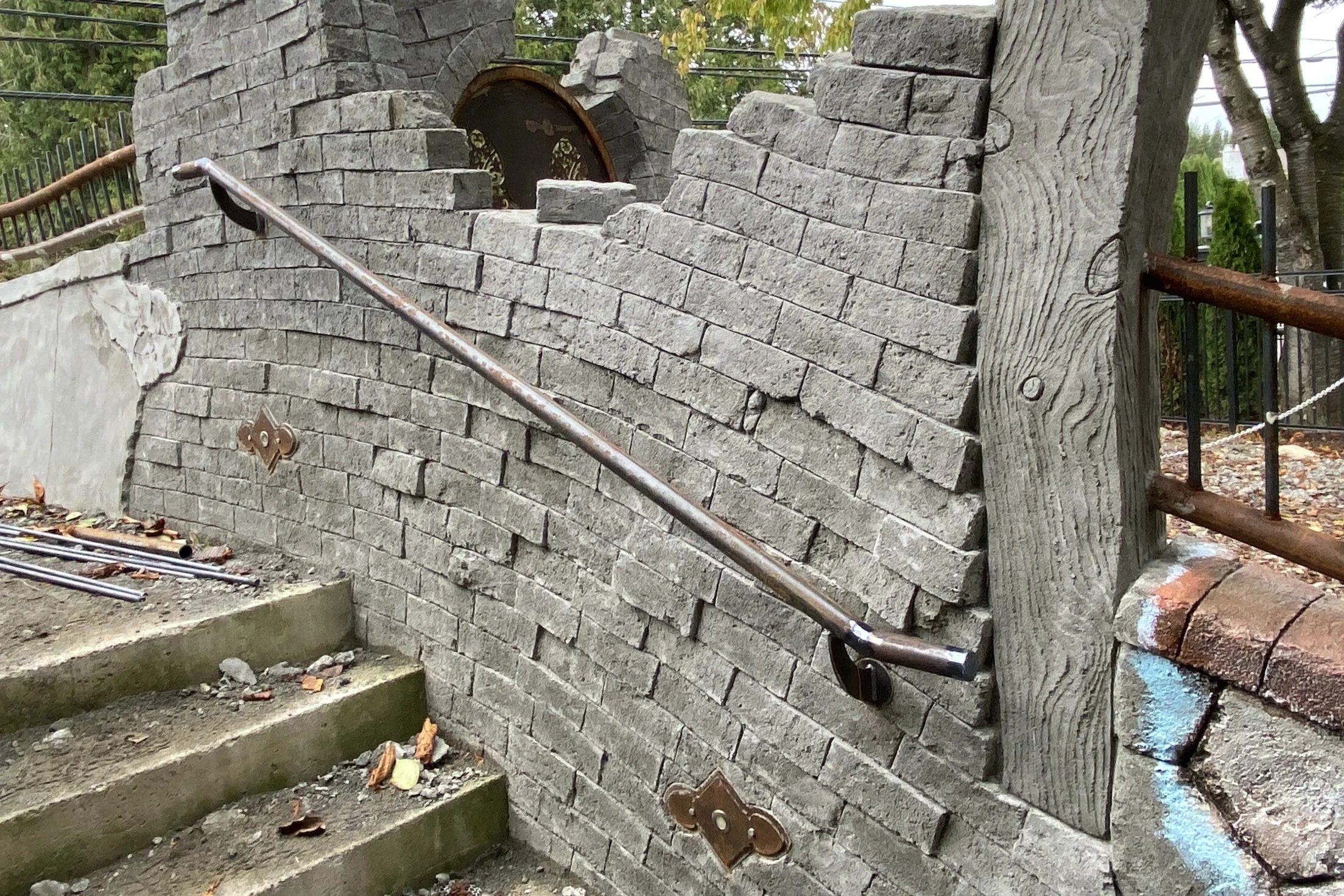 We recently installed the handrails for the North Star suite’s garden walkway. This completes the last of the welding on this section of the Hazelnut Inn - it was a nice little milestone to celebrate! Next up we need to finish painting the sculpted concrete and pour the concrete walkways. Stay tuned!