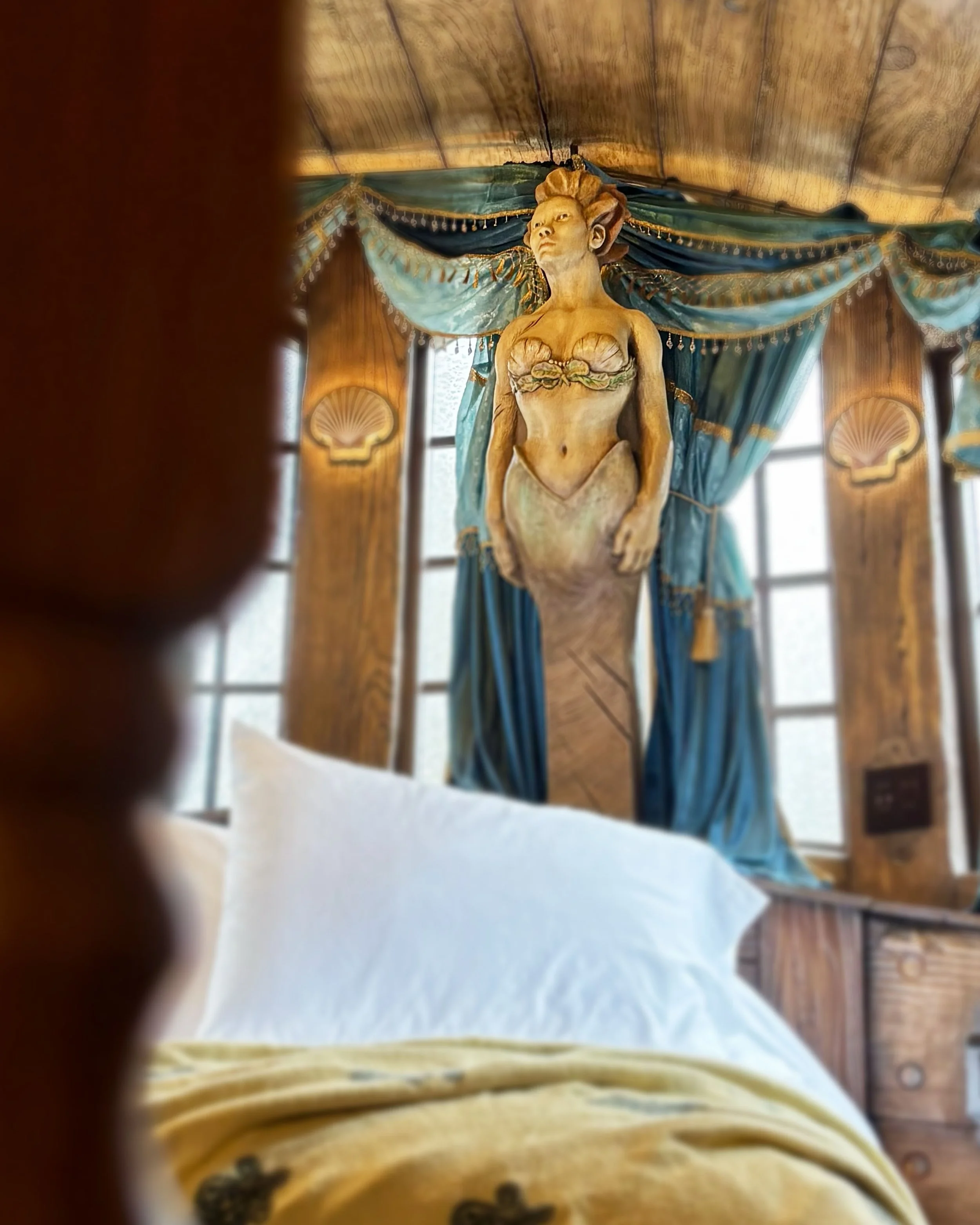 Your journey might begin with the North Star and the orchestral swell of Adele’s Hometown Glory. This suite isn’t just a room; it’s a tribute to the spirit of discovery. As you explore its tower sitting room, the driving, rhythmic piano of the track mirrors the steady pulse of a tall ship at sea. Surrounded by massive statues and hand-made relics of Captain Longbottom’s travels, you aren’t just a guest — you are an explorer finding a home in the heart of the unknown.