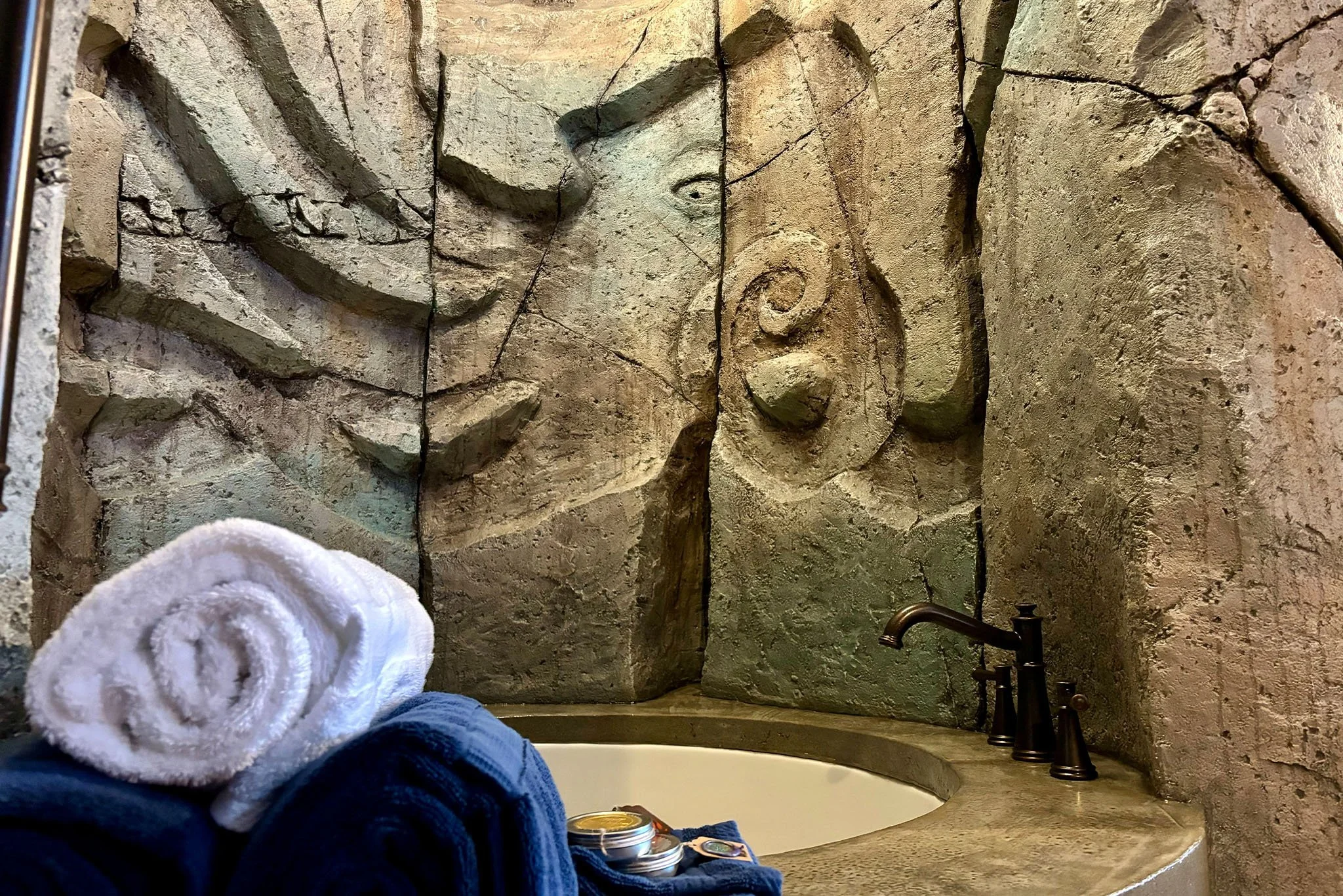 You’ll find the threshold of this retreat beneath the keel of the Avellana — a vessel that once outran the King’s cutters and danced through the spindrift of the Spanish Main. Step through its iron gate and you shall find a garden; a verdant treasure-isle hidden from the eyes of landlubbers. Here, waterfalls sing to the ferns, and a fire-bowl casts its flickering light upon relics from a forgotten age.